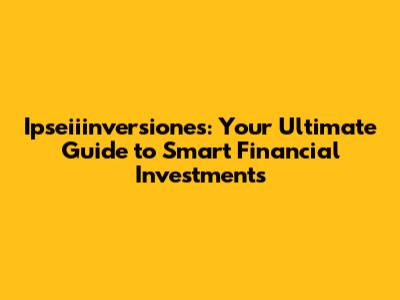 Ipseiiinversiones: Your Guide To Smart Financial Investments