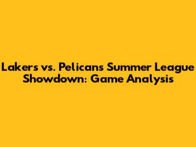 Lakers Vs. Pelicans Summer League Showdown: Game Analysis