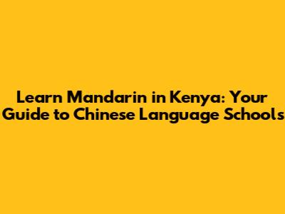 Learn Mandarin In Kenya: Your Guide To Chinese Language Schools