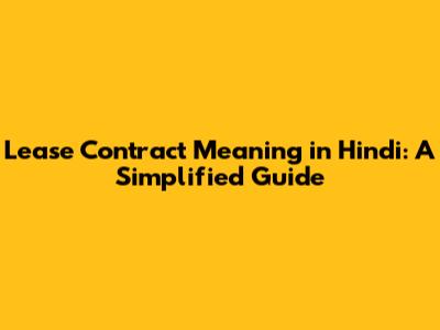 Hope this helps you understand the meaning of the lease contract in Hindi better. If you have any questions, feel free to ask!
