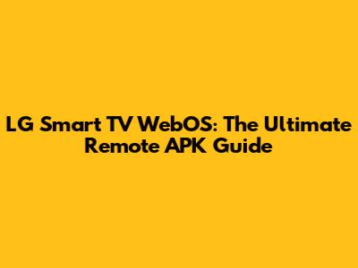 LG Smart TV WebOS: The Ultimate Remote APK Guide