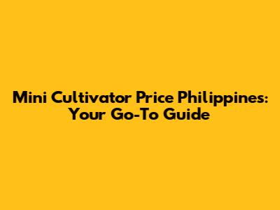 Mini Cultivator Price In The Philippines: Your Complete Guide