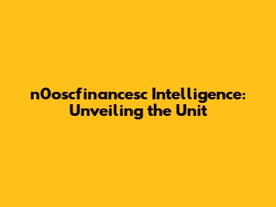 N0oscfinancesc Intelligence: Unveiling The Unit