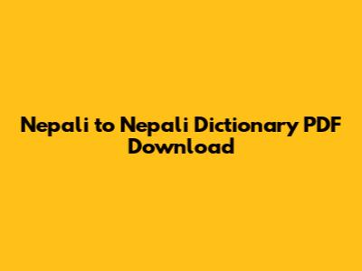 Nepali To Nepali Dictionary PDF Download