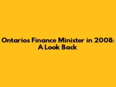 Ontario's Finance Minister In 2008: A Look Back