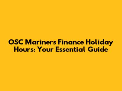 OSC Mariners Finance Holiday Hours: Your Essential Guide