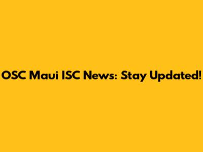 OSC Maui ISC News: Stay Updated!