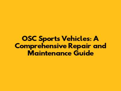 OSC Sports Vehicles: Repair & Maintenance Guide