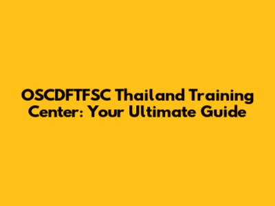 OSCDFTFSC Thailand Training Center: Your Ultimate Guide