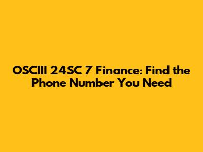 OSCIII 24SC 7 Finance: Find The Phone Number You Need