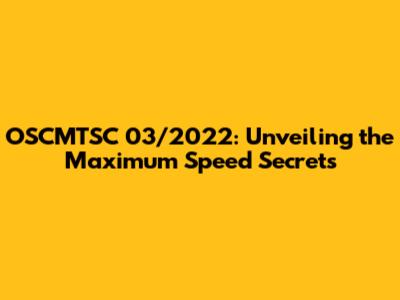OSCMTSC 03/2022: Unveiling The Maximum Speed Secrets