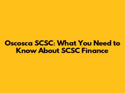 Oscosca SCSC: What You Need To Know About SCSC Finance