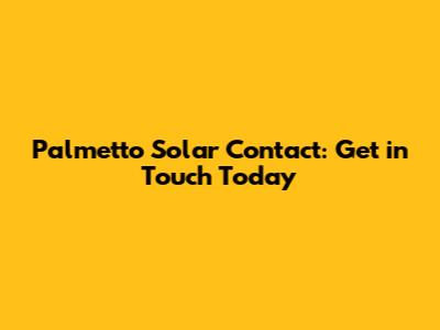 Palmetto Solar Contact: Get In Touch Today