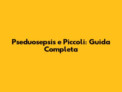 Pseduosepsis E Piccoli: Guida Completa