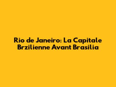 Rio De Janeiro: La Capitale Brzilienne Avant Brasilia
