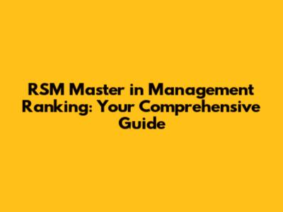 RSM Master In Management Ranking: Your Comprehensive Guide