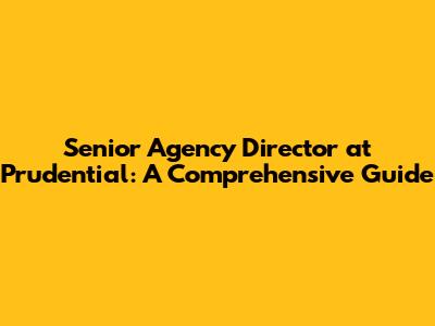 Senior Agency Director At Prudential: A Comprehensive Guide