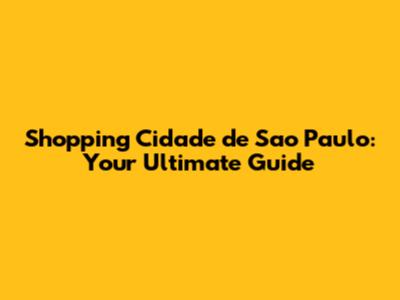 Shopping Cidade De Sao Paulo: Your Ultimate Guide