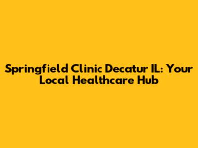 Springfield Clinic Decatur IL: Your Local Healthcare Hub