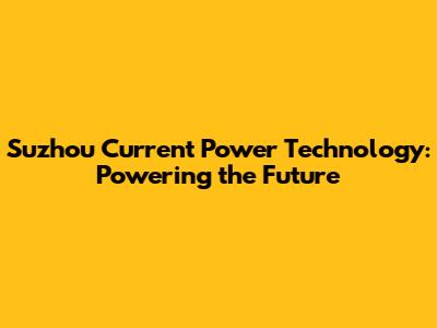 Suzhou Current Power Tech: Powering The Future