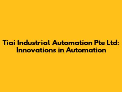 Tiai Industrial Automation Pte Ltd: Innovations In Automation