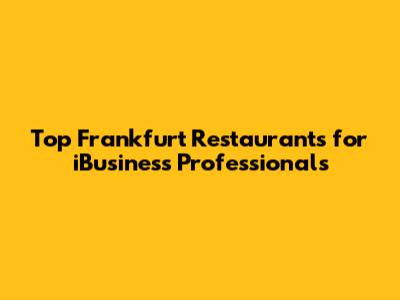 Top Frankfurt Restaurants For IBusiness Professionals