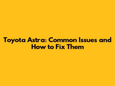 Toyota Astra: Common Issues And How To Fix Them