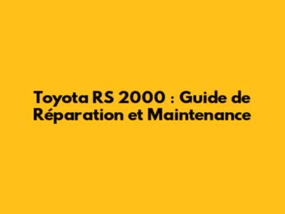 Toyota RS 2000: Guide De Réparation Et Maintenance