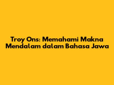 Troy Ons: Makna Mendalam Dalam Bahasa Jawa Yang Perlu Kamu Tahu!