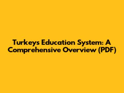 Turkey's Education System: A Comprehensive Overview (PDF)