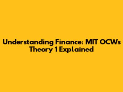 Understanding Finance: MIT OCW's Theory 1 Explained