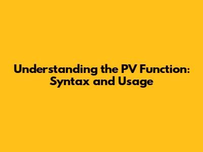 Understanding The PV Function: Syntax And Usage