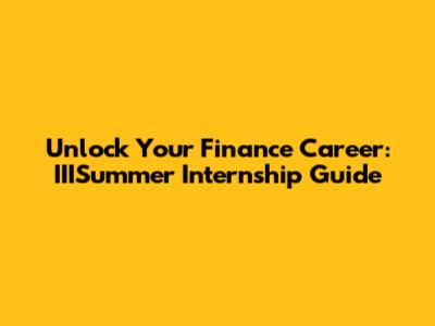 Unlock Your Finance Career: IIISummer Internship Guide