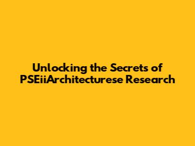 Unlocking The Secrets Of PSEiiArchitecturese Research