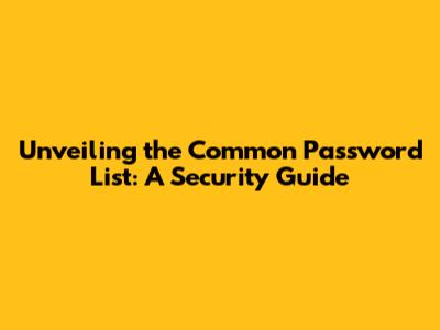 Unveiling The Common Password List: A Security Guide