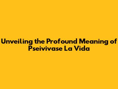 Unveiling The Profound Meaning Of 'Pseivivase La Vida'