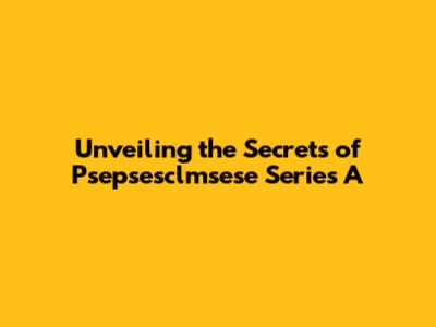 Unveiling The Secrets Of Psepsesclmsese Series A
