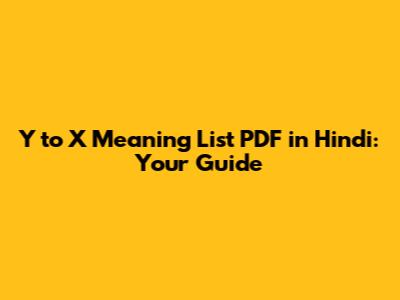Y To X Meaning List PDF In Hindi: Your Guide
